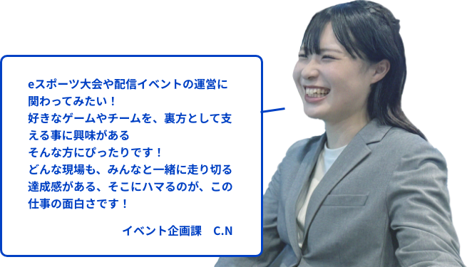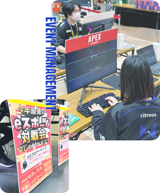 未経験からイベントの舞台を創り出す企画力、魅力的な創作力、プレイヤーの存在、そしてそれらを支えるマネジメント体制――これらが相互に作用することで、私たちは「競技」と「エンターテインメント」の両側面を兼ね備えた、総合的なeスポーツの価値を社会に届けています。